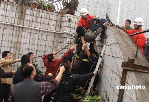 四川內(nèi)江男子鬧市上演“跳樓秀”(2)