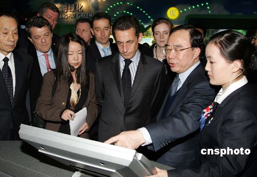 薩科齊聽取上海2020年城區(qū)規(guī)劃及世博會(huì)場(chǎng)館規(guī)劃情況介紹,對(duì)上海軌道交通很感興趣。
