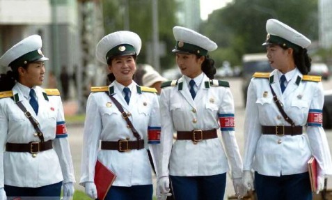 女交警是平壤一道亮麗的風(fēng)景線,她們都是亭亭玉立、正值妙齡的未婚女青年,年齡從16歲到26歲不等,體貌端正、聰穎健康,身高不低于1.65米,是在眾多高中畢業(yè)生中精心挑選出來(lái)的優(yōu)秀人才。她們站在十字路口中央,手拿交通指揮棒,眼睛注視著川流往來(lái)的車輛,迅速敏捷地指揮著交通,著實(shí)一幅巾幗不讓須眉的颯爽英姿,不禁令人眼前一亮!