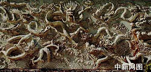 百龍壁:龍是中華民族的象征,是一種圖騰信仰。為什么在此塑108條龍呢?唐武德三年(庚辰),李世民與劉武周在綿山下雀鼠谷大戰(zhàn)受挫.此時,突然天上金鼓轟鳴,隨著從唐軍后面殺出108條白衣白甲的好漢.他們個個勇猛無比.經(jīng)過一陣廝殺擊敗了劉軍.化為108條龍飛向綿山.后李世民得知是雷神普化天尊相助,便在這里塑了百龍壁。