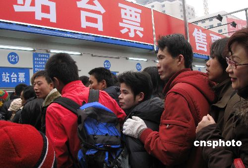 2008年1月19日周六,離春節(jié)還有十余天,大批在京就讀的大學生、打工者,在春運高峰到來前先期買列車票、站臺票回家鄉(xiāng)過春節(jié)。中新社發(fā) 鄒憲 攝