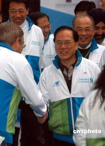 特區(qū)行政長(zhǎng)官曾蔭權(quán)到尖沙咀彌敦道起步點(diǎn),主持馬拉松開跑儀式。