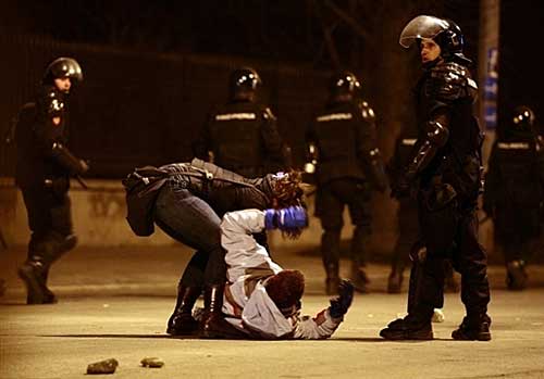 大約一千名憤怒的塞族青年,到美國大使館、一間美式快餐店和歐盟輪任主席國斯洛文尼亞大使館投擲石塊,并與防暴警察沖突,示威者又拆去歐盟旗幟,示威者又縱火、燒車,打爛大使館的玻璃窗。防暴警察以催激氣體及橡膠子彈驅散,又施放催淚氣體和出動警棍驅散。