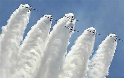組圖:特技飛行隊(duì)在新加坡航展上的精彩表演(2)