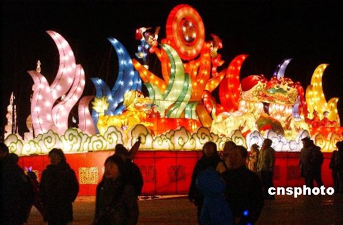 2008沈陽迎春燈會在沈陽世博園舉行,本屆燈會展出北京奧運(yùn)、鼠年吉祥、世界遺產(chǎn)、京劇臉譜、童話王國、沈陽地標(biāo)、傳統(tǒng)花燈、書法藝術(shù)八大主題系列,展線長3400米,花燈數(shù)量超過3000盞,花燈品類達(dá)到80多個,其中以“北京奧運(yùn)”為主題的組燈受到市民的“追捧”。中新社發(fā) 羅瀾 攝