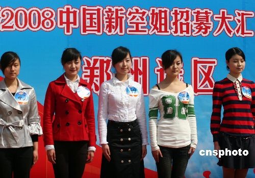 3月22日,2008中國新空姐招募大會在鄭州二七廣場舉行揭幕儀式。當日,來自全國各地的兩千多位美女云集鄭州報名應聘。據(jù)介紹,這是有史以來最大規(guī)模的空姐招募,此次招募大會計劃在全國招募500名空姐,其中鄭州地區(qū)招募55名空姐。中新社發(fā) 陳代述 攝