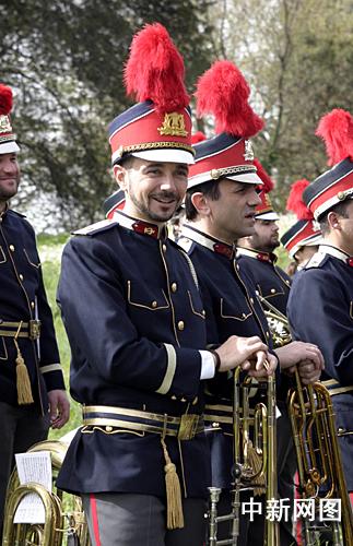 希臘當(dāng)?shù)貢r間3月24日,北京二00八年奧運(yùn)會圣火采集儀式在古奧林匹亞競技場舉行。圖為身穿制服的樂隊樂手。 中新社記者 王歡
