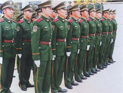 一、著裝的年代不符。武警部隊(duì)自2005年1月1日起,全體官兵統(tǒng)一佩戴胸標(biāo)和臂章,而照片上武警士兵的著裝既無胸標(biāo),也無臂章,該照片顯然是2005年1月1日之前所拍。自2006年5月1日始,武警部隊(duì)?wèi)?zhàn)士統(tǒng)一換著05式服裝,其服裝材質(zhì)由布料改為仿毛面料,挺括舒展,而照片上顯示武警戰(zhàn)士穿著的是87式布料服裝。顯然,照片上反映的服裝與部隊(duì)現(xiàn)行著裝不是一個(gè)年代。