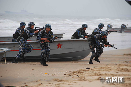 美國上將觀摩中國海軍陸戰(zhàn)隊(duì)的軍事演練