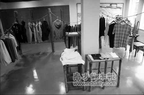 二樓,除了球鞋,還有一些外套和T恤,其中部分是陳冠希和他的朋友自己設(shè)計的,這些衣服掛在舊上海老式的竹竿上,簡約至極。