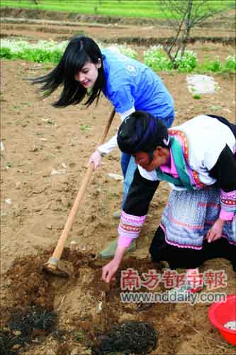 身為“樂施會中國發(fā)展基金”樂施大使(編者注:樂施大使不止一個,胡杏兒、何韻詩等不少香港藝人都以這一身份積極參與樂施會的慈善活動)的周慧敏,于月前赴云南祿勸縣馬櫻花村探訪當?shù)卮迕,親身體驗樂施會在當?shù)赝菩小爸俗灾狈鲐毠ぷ鞯某尚А?/p>