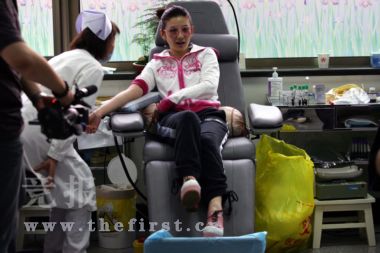 等候獻(xiàn)血的時(shí)候,黃奕說:“希望災(zāi)區(qū)的人民能順利渡過難關(guān),政府也在極力給予幫助,所以一定要堅(jiān)持下去。”黃奕笑著表達(dá)了自己的心愿:“一切都會(huì)好起來的,奧運(yùn)會(huì)也一定能順利舉辦!背檠(yàn)的時(shí)候,黃奕一臉輕松,“沒事,就像被蚊子咬了一下。”整個(gè)獻(xiàn)血的過程,看不出黃奕有絲毫的緊張,甚至和周圍獻(xiàn)血的人們聊了起來。此外,她還“勒令”身邊的同事:“你也去獻(xiàn),快點(diǎn)快點(diǎn)!鲍I(xiàn)血完畢,黃奕輕松地走出來,身后還有被她要求獻(xiàn)血的同事,說:“我也獻(xiàn)完了!