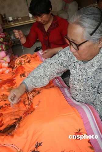 5月19日,在山東博興縣城東街道辦事處顧家村,幾名農(nóng)家婦女正在趕制新被,她們打算將縫制好的被褥,通過當(dāng)?shù)赜嘘P(guān)慈善部門捐往地震災(zāi)區(qū)。 四川省汶川縣5月12日發(fā)生8.0級地震后,災(zāi)情時刻牽動著當(dāng)?shù)剞r(nóng)民的心,他們通過看電視、聽廣播等各種方式高度關(guān)注抗震救災(zāi)進展情況,他們踴躍向災(zāi)區(qū)捐錢、捐物,當(dāng)他們了解到災(zāi)區(qū)缺乏被褥等生活用品時,自己出錢購買回了布料、棉花絨等,趕制被褥,希望能以最快的速度送往災(zāi)區(qū),幫助災(zāi)區(qū)人民群眾早日度過難關(guān),恢復(fù)正常生活。