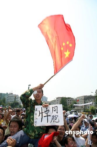 5月19日14時(shí)28分,成都天府廣場(chǎng),數(shù)以萬計(jì)的民眾自發(fā)聚集在一起默哀,為在四川汶川地震中遇難的同胞哀悼、祈禱,之后,萬人高喊“雄起”!