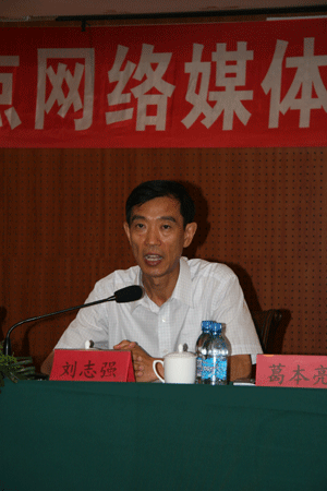 中共錦州市委書記劉志強(qiáng)向全國網(wǎng)絡(luò)媒體記者介紹錦州的發(fā)展?fàn)顩r。