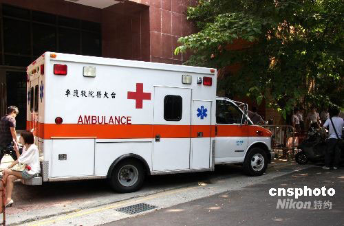 圖為19日早停放在臺(tái)北地方法院側(cè)門的臺(tái)大醫(yī)院救護(hù)車。中新社發(fā) 陳立宇 攝