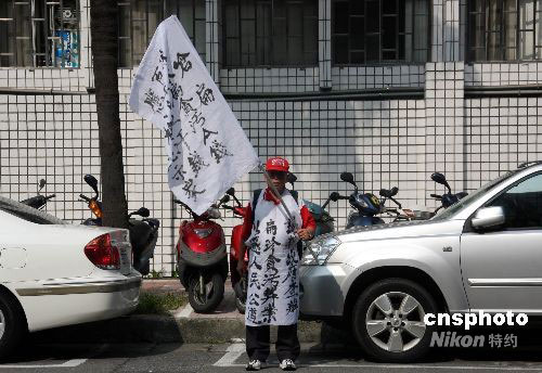 圖為一名臺灣民眾今早在臺北地方法院正門對面“嗆扁”。中新社發(fā) 陳立宇 攝