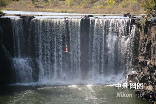 吊水樓瀑布,古時土著人名曰"發(fā)庫",位于湖之北端,距"鏡泊山莊"僅三公里。吊水樓瀑布酷似聞名世界的"尼亞加拉大瀑布"。湖水在熔巖床面翻滾、泡哮,如千軍萬馬之勢向深潭沖來,然后從斷巖峭壁之上飛瀉直下,撲進(jìn)圓型甌穴之中。潭水浪花四濺,如浮云堆雪,白霧彌漫;又似銀河倒瀉,白練懸空。水聲震耳如有雷鳴。瀑布一般幅寬四十余米落差為十二米。雨季或汛期,瀑布呈現(xiàn)兩股或數(shù)股迭落,總幅寬達(dá)二百余米。