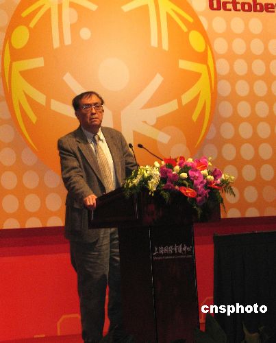 2007年10月3日,中國著名電影導演謝晉出現(xiàn)在上海舉辦的智障人士福利全球政策高峰論壇上。作為智障孩子的父親,謝晉以親身經(jīng)歷力陳特奧運動對智障人士起到的積極作用,他說特奧運動員自強不息的精神讓他深受感動。中新社發(fā) 李佳佳 攝