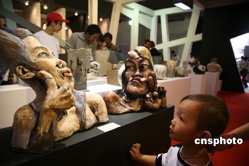 十月十八日,2008中國景德鎮(zhèn)國際陶瓷博覽會開幕,來自英國、日本、德國、法國、意大利、俄羅斯、韓國、越南和中國大陸、香港、臺灣等三十多個國家和地區(qū)的三千八百多名陶瓷精英聚首博覽會,上演一場國際陶瓷藝術(shù)大比拼。中新社發(fā) 吳慶才 攝