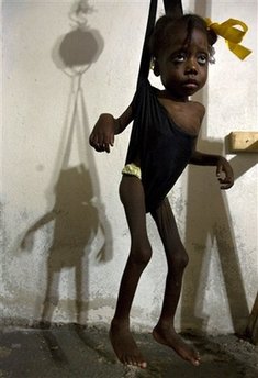 今年,由于風(fēng)暴襲擊,海地60%的糧食收成被橫掃一空。在某些地區(qū),無國界醫(yī)生組織發(fā)現(xiàn),營養(yǎng)不良的比例高達5%,其中,兒童更是受害最大的人群。據(jù)美聯(lián)社報道,無國界醫(yī)生組織比利時分部的負責(zé)人馬克斯.科斯奇表示,除了這26名孩子,還有65個嚴重營養(yǎng)不良的兒童被送到臨時搭建的山區(qū)帳篷診所及太子港等地區(qū)的醫(yī)院接受治療。“有一個孩子在治療中死去了”。這些孩子的癥狀包括腸胃萎縮,因營養(yǎng)不良導(dǎo)致色素減少、發(fā)色變淡,有些甚至出現(xiàn)了浮腫,這是因蛋白質(zhì)缺乏引起的功能紊亂癥狀。