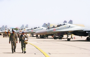 印度空軍以前認(rèn)為機(jī)場和跑道目標(biāo)明顯、防護(hù)脆弱,如果將戰(zhàn)機(jī)部署在靠近邊境的一線機(jī)場,很容易因機(jī)場和跑道被毀而喪失戰(zhàn)斗力。但在“攻勢”戰(zhàn)略的指導(dǎo)下,印度空軍認(rèn)為戰(zhàn)機(jī)前置部署顯然更有利于向?qū)κ职l(fā)起“先發(fā)制人”的攻擊,這樣機(jī)場和跑道防護(hù)脆弱的缺點(diǎn)就不用那么令人牽腸掛肚了。