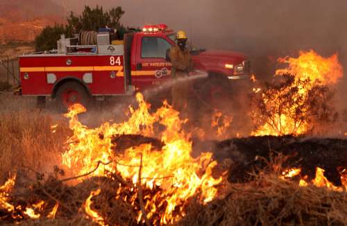 今天的山火已經(jīng)迫近威爾遜山頂,這里是洛杉磯最重要的廣播電視和通信發(fā)射臺所在地,共有二十多個廣播、電視和移動電話發(fā)射架。消防官員告訴當?shù)孛襟w記者,失控的山火很可能危急這些設(shè)施。這些廣播通訊設(shè)施一旦失火,將對當?shù)卦斐蓢乐赜绊。此外,山頂一座具有百年歷史的天文臺也備受威脅,該天文臺擁有兩座大型天文望遠鏡和數(shù)百萬美元的科研設(shè)備。