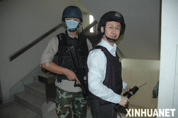記者和中國(guó)使館人員以及武警雪豹突擊隊(duì)警衛(wèi)小組的戰(zhàn)士紛紛在煙塵中沖出房間。中國(guó)駐伊拉克大使常毅立刻把大家召集在屋頂最為堅(jiān)固的門廳中,指揮大家采取自救措施。在曼蘇爾飯店中餐廳工作的兩名中國(guó)廚師跑到使館求救。他們受了傷,身上沾滿鮮血,大使夫人和武警戰(zhàn)士立刻取來(lái)急救包為他們包扎。