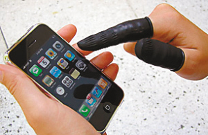 在玩iPhone時,很多人確實擔(dān)心會在顯示屏上留下指痕。最后奧地利一家公司找到了解決這個問題的辦法:用乳膠制成的手機(jī)指套罩住每根手指。由于手機(jī)指套的售價是10歐元,因此該公司認(rèn)為,一定有很多消費者戴著粉色、白色、藍(lán)色或黑色指套在大街上走。該公司還制作了一個尺碼表,幫助消費者確定他們的手指大小。