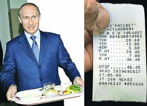 有意思的是,售貨員由于緊張,小票上漏打了色拉和茶水,結(jié)果讓普京總理占了“小便宜”,只花了46.45盧布。