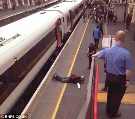 就在英國警方抓捕這名無辜男子時,一名在現(xiàn)場的乘客使用手機拍下了有關(guān)過程。有目擊者對記者說,“當時有很多人都在排隊買票,但突然有多名全付武裝的警察沖進車站,他們的人數(shù)大約有10個人,有些警察拿著手槍,另外還有一條警犬。我聽見有人說:不要讓任何人走下火車或者離開站臺。隨后火車站所有的出口都被封鎖了。火車的車門打開后,那名男子剛一走下站臺,就被命令趴在地上,他被要求伸開雙手并靠攏雙腿。警方對這名男子的背包進行了認真的搜查,然后又把他帶到一間廢棄不用的盥洗間,可能是對他進行一步的搜查。這一幕真是讓人感到非?植。”