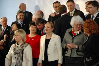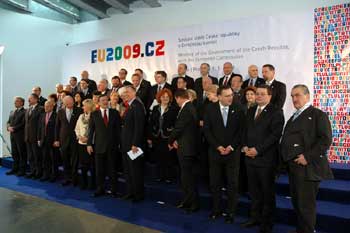 7日上午他們在伏爾塔瓦河畔的列支敦士登宮會見了輪值主席國捷克的政府內(nèi)閣成員。官員們按照地上已標(biāo)好的名字“對名入站”,讓記者們拍攝合影。(黃頻)