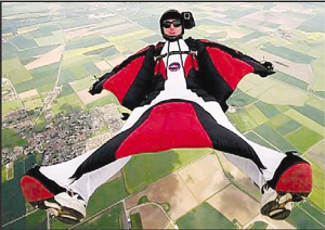 據(jù)悉,隊(duì)員們所穿的“飛翼服”一件造價(jià)1000美元,它形狀酷似蝙蝠俠所穿的外衣,在雙腿、雙臂和軀干之間縫制了大片緊密結(jié)實(shí)的尼龍織物,從而形成一對(duì)可以充滿空氣的“翅膀”將飛行者托起,讓其在緩慢下降的同時(shí)也能自如調(diào)整航向。一旦降落到距地面900多米處時(shí),隊(duì)員們就打開(kāi)“飛翼服”上的2個(gè)降落傘,然后安全落地。此外,隊(duì)員們頭上都將佩戴了一個(gè)頭盔和攝像機(jī),從而將空中表演時(shí)的畫(huà)面拍攝下來(lái)。