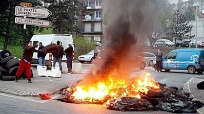 法新社的記者稱(chēng),20艘漁船排列在加來(lái)港口,抗議者焚燒車(chē)胎。工會(huì)的領(lǐng)導(dǎo)人稱(chēng),20多艘船還封鎖了布倫和敦刻爾克港口。