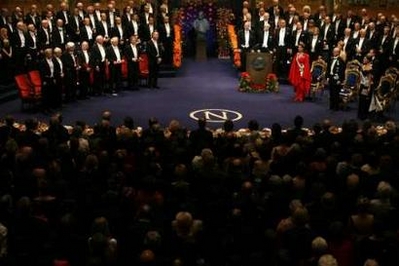 中新網(wǎng)12月12日電 綜合報(bào)道,2007年諾貝爾獎(jiǎng)?lì)C獎(jiǎng)典禮近日分別在挪威首都奧斯陸和瑞典首都斯德哥爾摩隆重舉行。不同領(lǐng)域的多位獲獎(jiǎng)?wù)吆粲跬黄茖W(xué)科和國家界限,應(yīng)對(duì)全球變暖等人類共同面對(duì)的挑戰(zhàn)。瑞典國王,王后等王室成員還與諾貝爾獎(jiǎng)獲得者共享大餐。