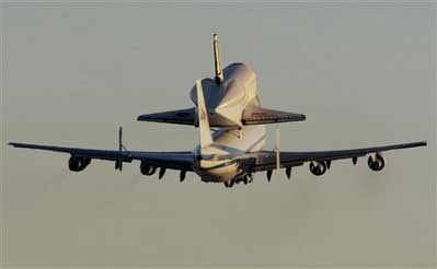 美國“奮進(jìn)”號航天飛機10日從加利福尼亞啟程,“騎”在在一架波音747大型貨機背上,前往佛羅里達(dá)的肯尼迪航天中心的“老家”。由于天氣不好,“奮進(jìn)”號在結(jié)束了本次太空之旅后,因佛羅里達(dá)天氣不好,只能備降在加州的愛德華茲空軍基地。