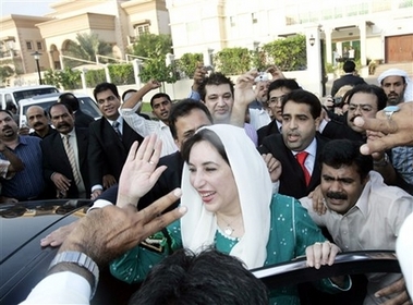 巴基斯坦總統(tǒng)穆沙拉夫希望在選舉中得到布托政黨的支持。兩人后來(lái)達(dá)成協(xié)議,當(dāng)局終止對(duì)布托貪污罪名的指控。另一方面,巴基斯坦最高法院今年8月裁決,被政變趕下臺(tái)并流亡國(guó)外的前總理謝里夫可以回國(guó)。