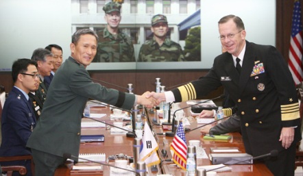 中新網(wǎng)11月6日電 韓聯(lián)社消息,韓國(guó)聯(lián)合參謀總長(zhǎng)金寬鎮(zhèn)和美國(guó)參謀總長(zhǎng)邁克爾·馬倫(海軍上將)6日上午在首爾龍山區(qū)國(guó)防大樓舉行第29次韓美軍事委員會(huì)(MCM),集中討論了兩國(guó)軍事領(lǐng)域里懸而未決的問題。