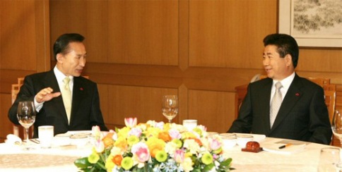 盧武鉉李明博共進(jìn)晚餐 討論政權(quán)交接等問題(圖)