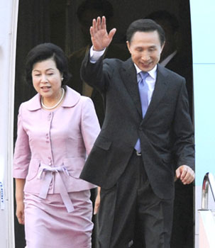 李明博抵達(dá)日本進(jìn)行訪問 今將會(huì)晤福田康夫(圖)