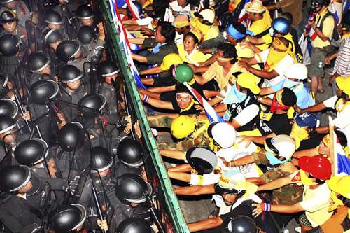 本月二十六日,民盟的支持者在曼谷舉行大規(guī)模示威,沖擊政府部門并占領總理府。盡管泰國民事法院發(fā)出命令,要求示威者撤出總理府,但領導示威的民盟拒絕執(zhí)行法院命令,繼續(xù)在總理府內(nèi)舉行示威。
