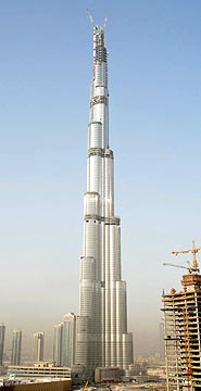 正在修建中的“迪拜塔”現(xiàn)已逾160層樓高,經(jīng)過4年的施工,外部幾乎完成,內(nèi)部工作亦已展開,計(jì)劃于明年9月落成。