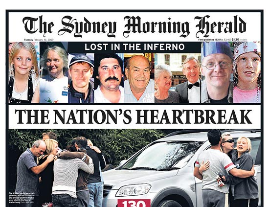 《悉尼先驅(qū)晨報(bào)》認(rèn)為,此次火災(zāi)是澳大利亞最嚴(yán)重的自然災(zāi)害之一,并建議將2009年2月7日作為“國(guó)家哀悼日”。他們還將這場(chǎng)火災(zāi)與世界大戰(zhàn)、大蕭條以及巴厘島爆炸案等相提并論。