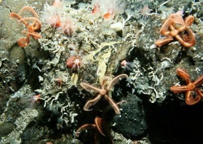 棲居在海山山頂?shù)暮Q笊镆话闶巧汉骱秃>d,生物學家相信,這是海山上第一次出現(xiàn)類似海蛇尾城市的生態(tài)系統(tǒng)。