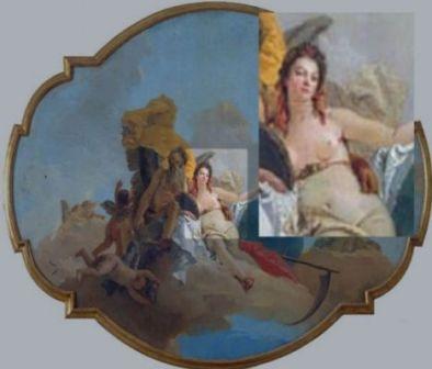 這幅名畫是意大利十八世紀洛可可風格大師提埃坡羅的名作之一,名為《Truth Revealed by Time》,由貝盧斯科尼親自挑選,掛于總理府新聞發(fā)布室墻上作裝飾,期望增添一點藝術色彩。
