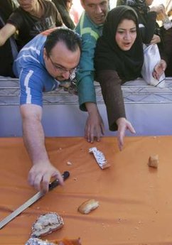 中新網(wǎng)10月19日電 據(jù)臺灣中廣新聞報道,伊朗做出刷新世界紀錄的特大號三明治,可是還來不及完成認證,就被圍觀的群眾搶食一空。