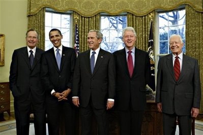 中新網(wǎng)1月8日電 據(jù)美國媒體報道,美國當選總統(tǒng)奧巴馬7日稱,他與布什以及三位前總統(tǒng)克林頓、老布什和卡特共進午餐將是一次“非同尋常的聚會”。