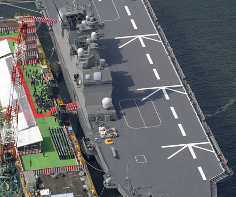 不僅如此,日本也實(shí)戰(zhàn)部署“準(zhǔn)航空母艦”,加快行動(dòng)步伐。航母被分類為“攻擊武器”,因此,目前憲法規(guī)定不能擁有航母的日本18日將可搭載直升機(jī)的驅(qū)逐艦“日向”號(hào)(1.39萬(wàn)噸級(jí))進(jìn)行了實(shí)戰(zhàn)部署!叭障颉碧(hào)艦長(zhǎng)197米,可以搭載11架直升機(jī)。