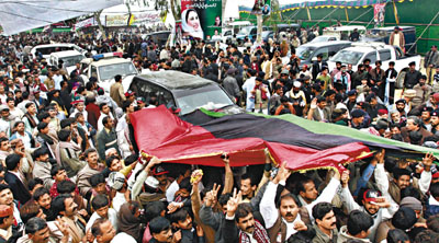 20萬名支持者高舉國旗和叫喊口號(hào),悼念布托。