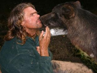 據臺灣東森新聞報道,尖銳的牙齒加上犀利的眼神,森林野狼總是令人不寒而栗,每個人都避之唯恐不及。但是現在卻有一個人不但不害怕,還把牠們看做一家人,英國的野生動物專家艾利斯研究狼群習性將近20年,每天都和狼生活在一起,不僅敢大膽地近身地喂食狼群,而且還會和狼一起生吃動物尸體,是名副其實的狼人。